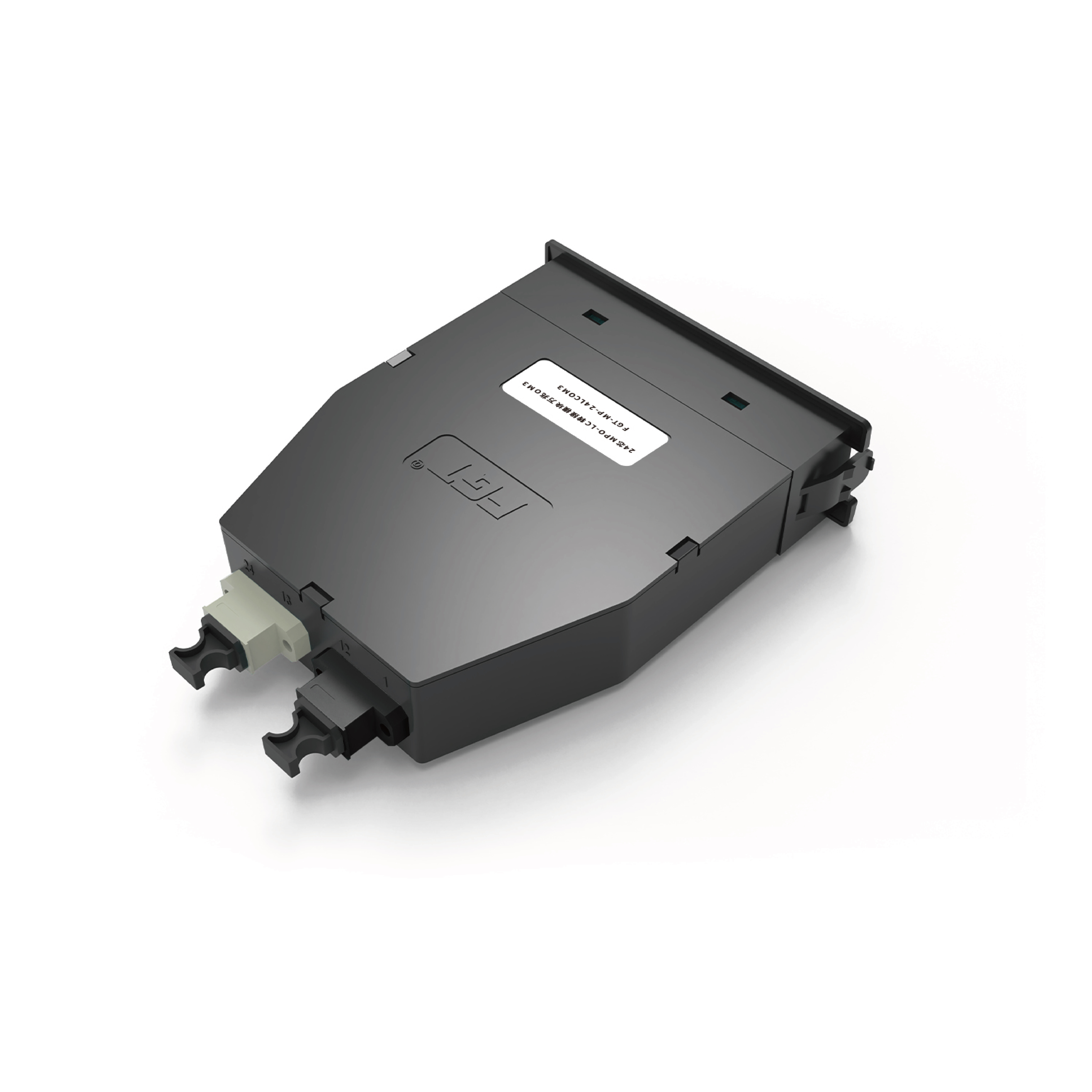 MTP/MPO-LC模塊內(nèi)置分支跳纖,用于將主干光路終端的24芯MPO/MTP適配器分支為LC適配器。LC適配器位于模塊前端,背部配置2個(gè)MPO/MTP適配器,此模塊可快速安裝于MPO系列機(jī)架式光纖配線箱中,用于主干預(yù)端接光纜跳接與端接。